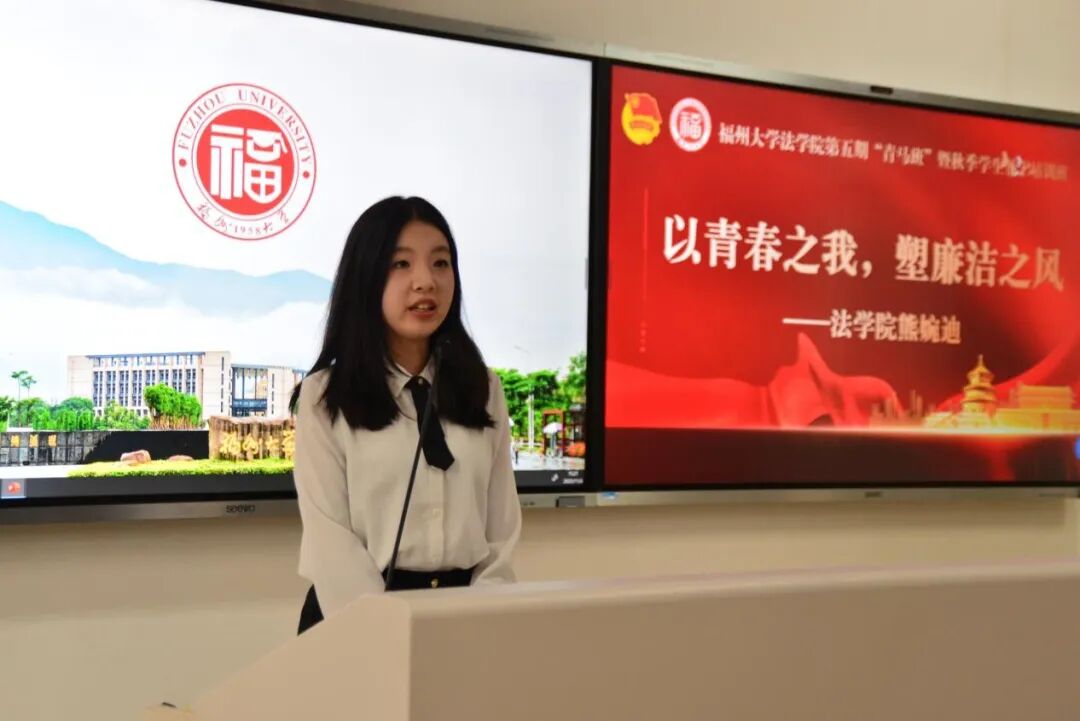 接下来,机械学院的傅鸣洋同学以“构建灵魂防火墙”为核心展开分享。他将廉洁比作抵御“微腐败”的核心代码,点出校园中“便利木马”“人情钓鱼邮件”等隐形腐败形式,提出公私分明、公平公正、防微杜渐三条“安全规则”。他呼吁学子既要守护自身廉洁防线,也要主动构建清朗校园风气,以清白青春抵御诱惑,彰显新时代青年的责任与担当。
