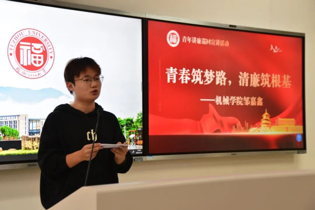机械学院的邹嘉鑫同学,以“青春逐梦路,清廉筑根基”为主题分享感悟。他结合机械专业特色,以“螺丝松动致机器失衡”“零件无约束难配合”为喻,阐释廉洁是人生“稳定主轴”的深刻内涵。他指出廉洁藏于实验数据记录、团队分工等日常选择中,呼吁学子以清廉为轴、信念为轮、担当为动力,将公正透明融入职业信条,在青春逐梦路上坚守底线,展现了机械学子的责任与担当。