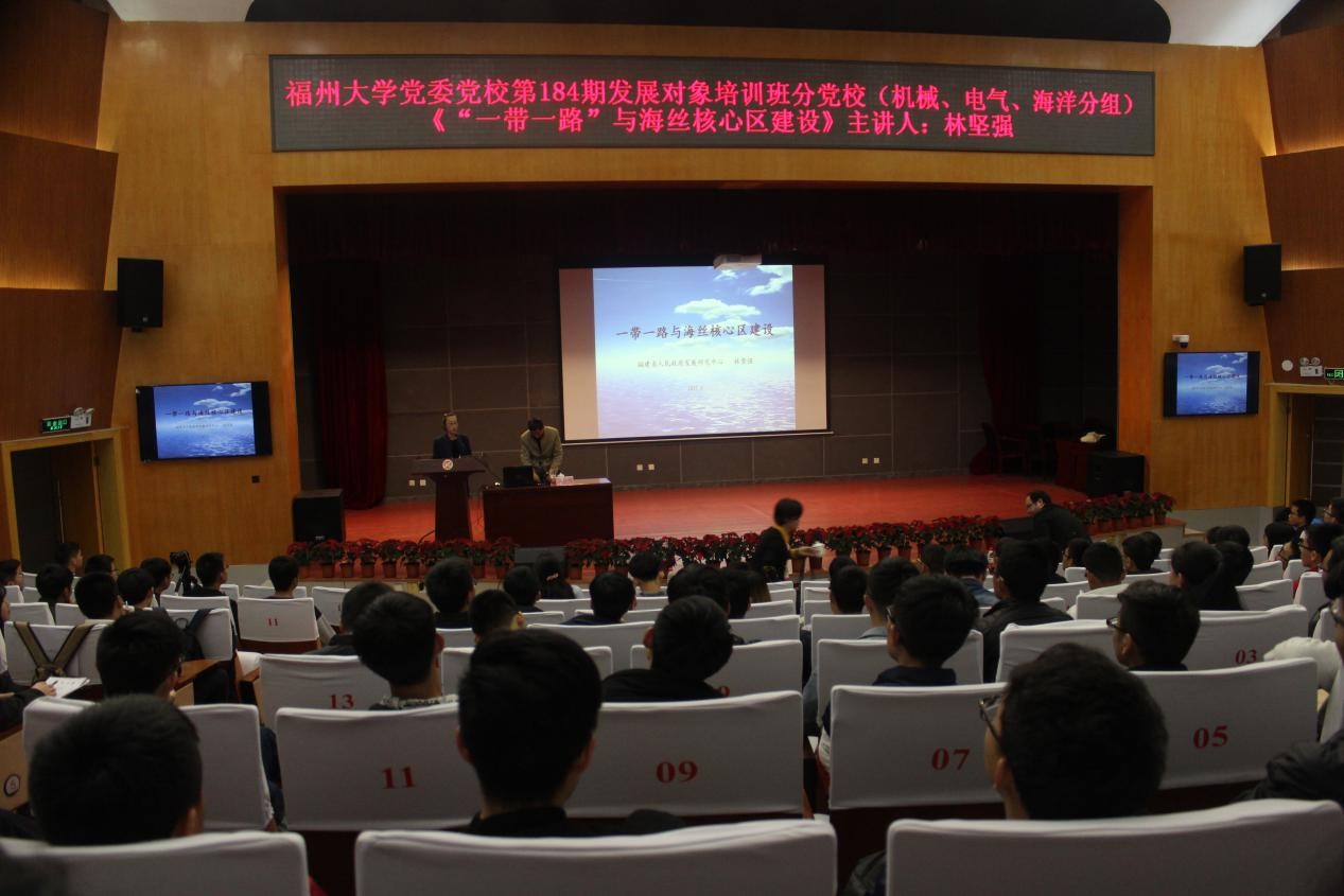 开展党校第184期发展对象培训班集中授课,省人民政府发展研究中心外经处处长、副研究员林坚强老师为同学们上了《“一带一路”与海丝核心区建设》的党课。av大平台