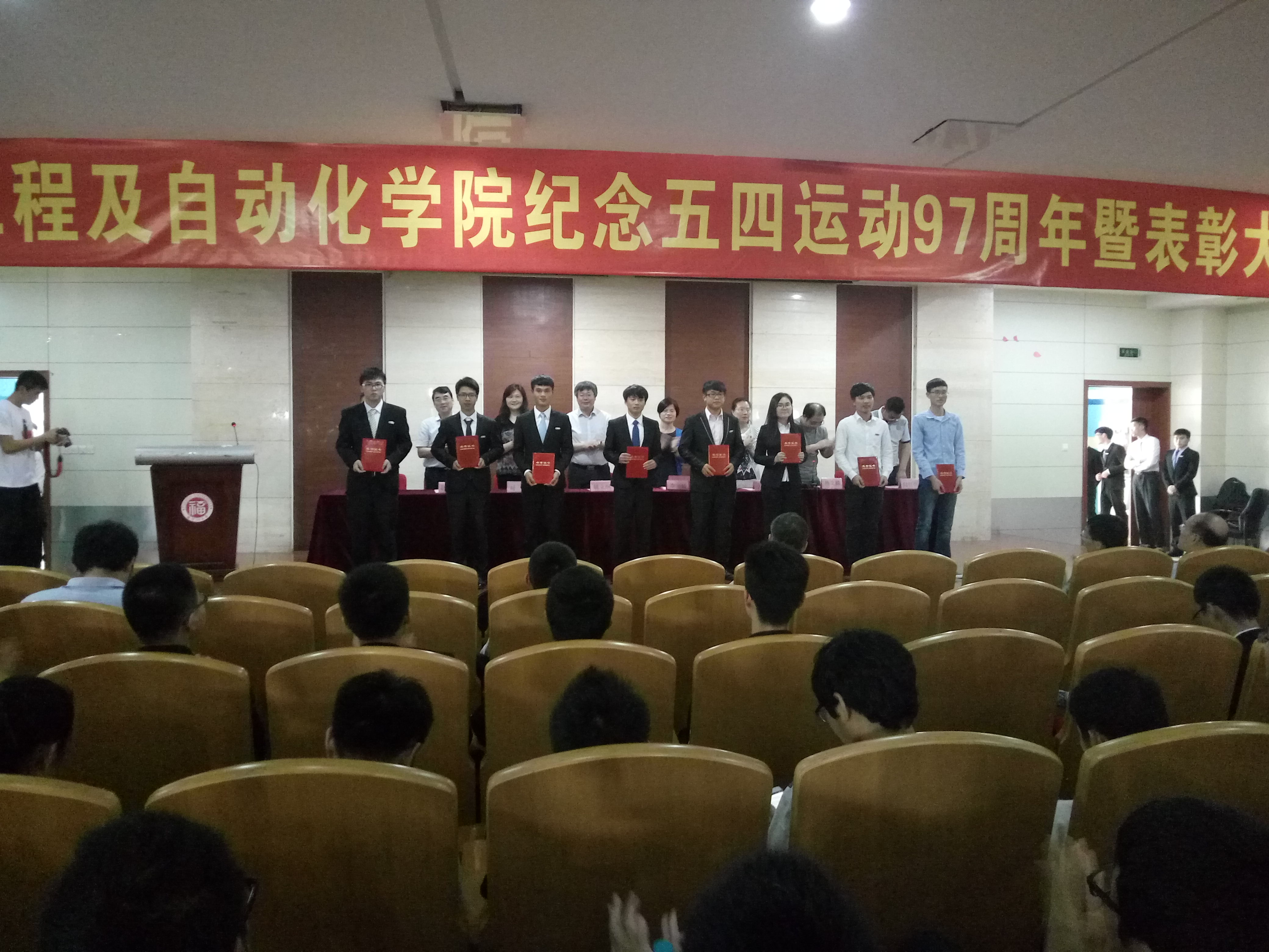 5月12日下午,机械学院“纪念五四运动97周年暨表彰大会”在素质拓展中心学术报告厅隆重召开。校团委副书记(主持工作)吴雪老师,校学生处副处长叶青老师,机械学院党委书记李玲研究员,院长姚立纲教授,副院长赵云副教授、向红亮教授、何炳蔚教授和部分教师学生代表出席了此次大会。大会由学院党委副书记林文麟老师主持。