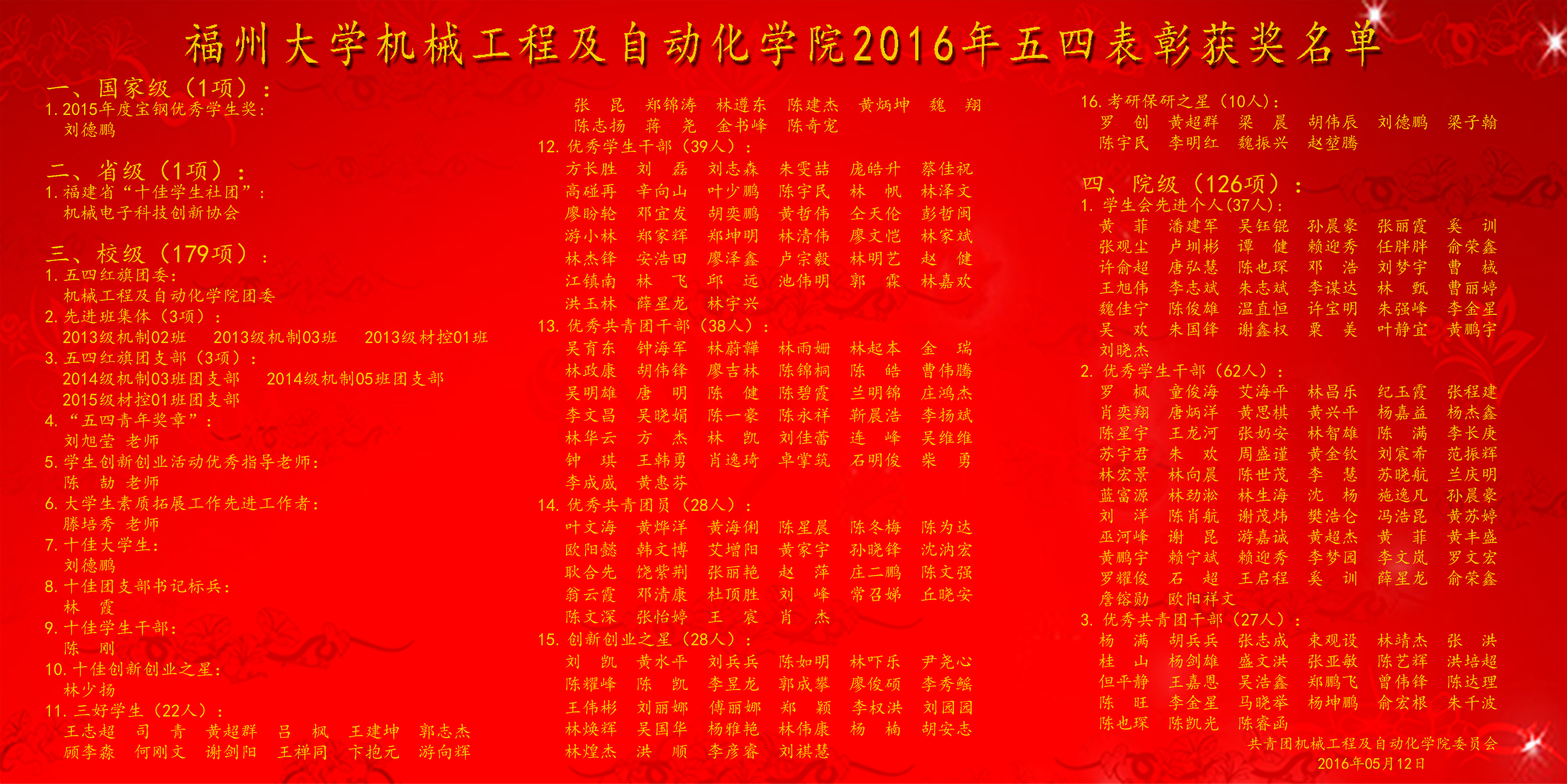 大会分为六个议程,首先全体起立,奏唱国歌。随后由何炳蔚副院长宣读获得2016年五四表彰名单,包括机械学院“我心目中的好老师”,av大平台