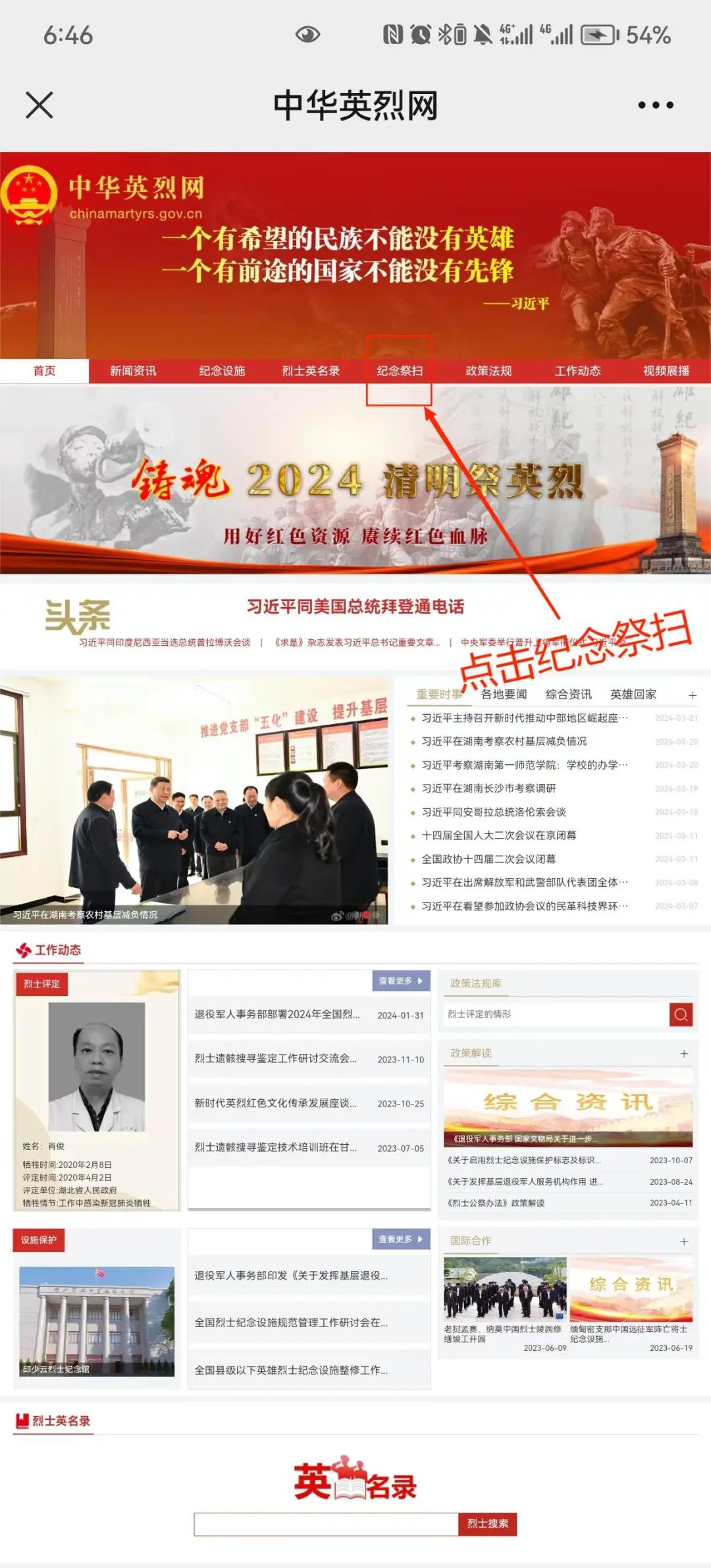 线上通过“铸魂·2024·清明祭英烈”活动进行网络祭扫向先烈献花、留言和寄语,中华英烈网网址://www.chinamartyrs.gov.cn/.