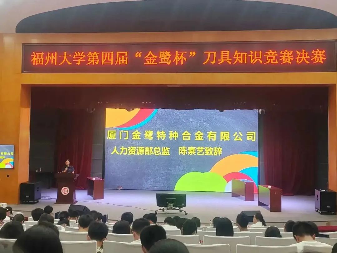学院团委书记林成金代表学院对厦门金鹭特种合金有限公司长期以来的支持和赞助表示感谢,对认真准备、在初赛中取得优异成绩逐鹿决赛的队伍表示祝贺,并希望大家通过知识竞赛进一步掌握刀具相关知识和拓展知识领域,促进专业学习和实践。