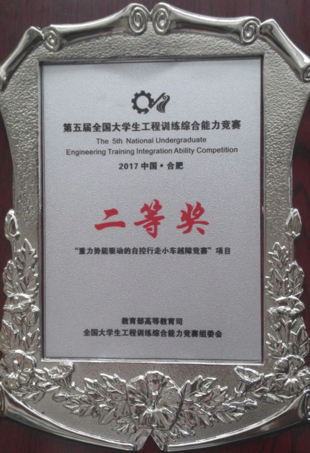2017年5月12日至14日,av大平台 学生林焕辉、杨楠、常洁三人在安徽合肥参加2017第五届全国大学生工程训练综合能力竞赛,获得二等奖