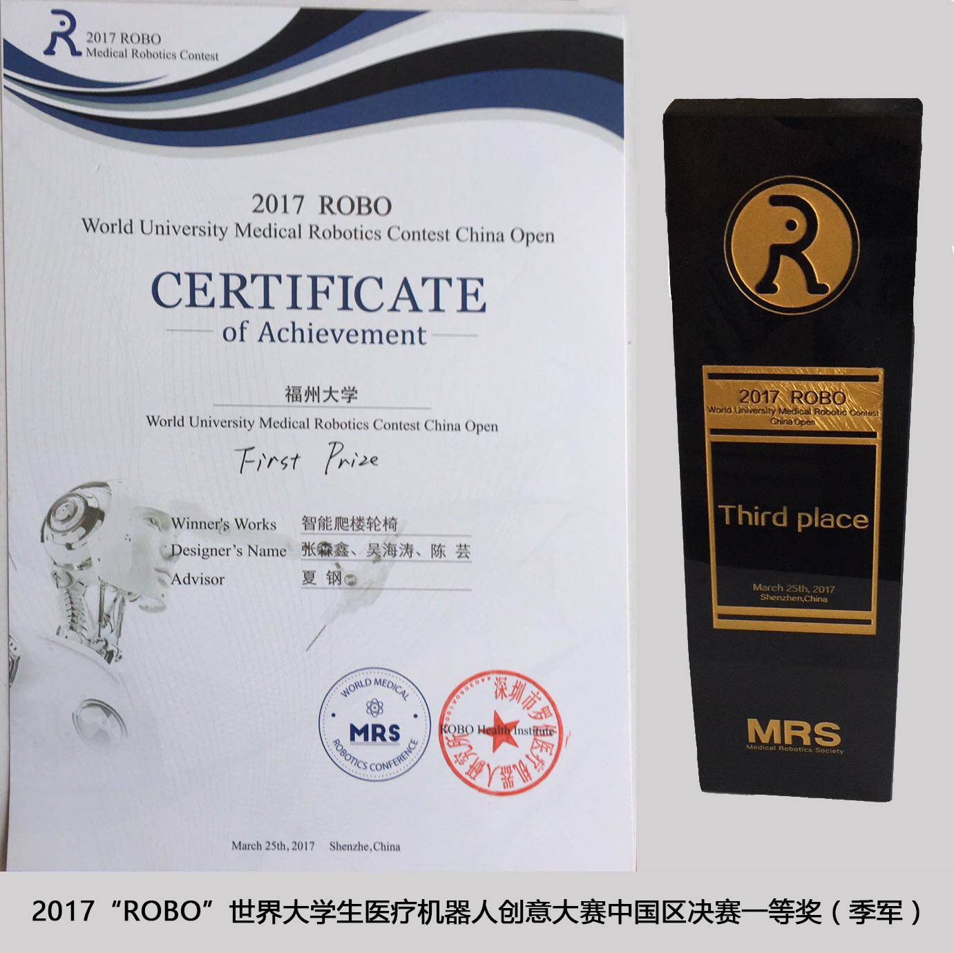 小平科技创新团队的参赛作品《智能爬楼轮椅》,获得一等奖(季军)的优异成绩。